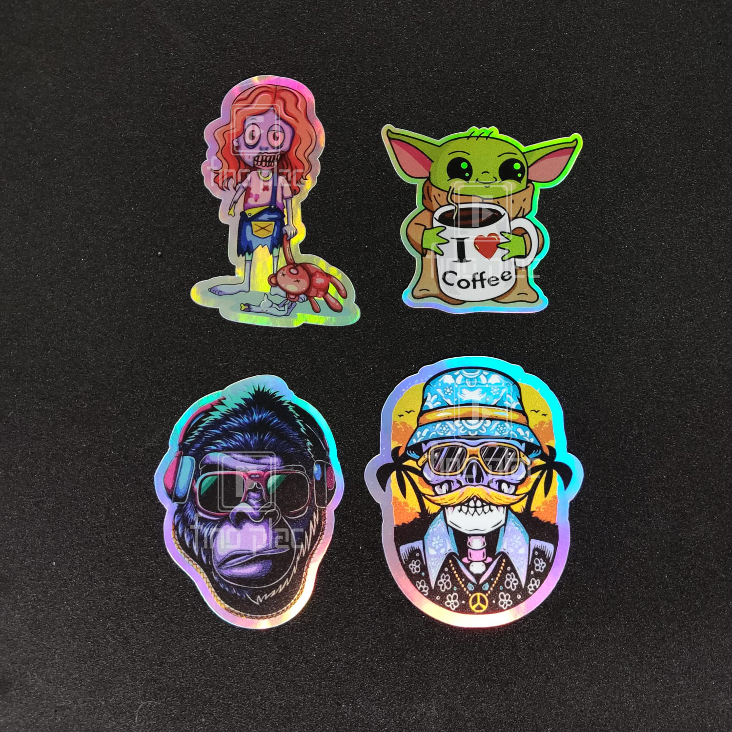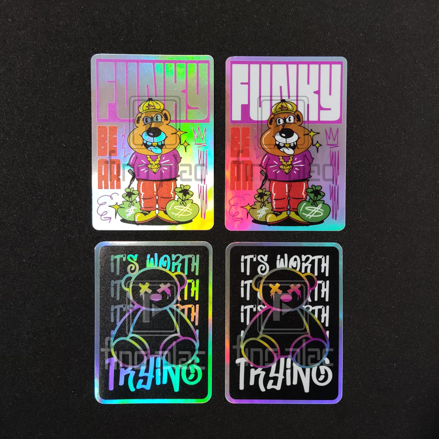 - O acabamento holográfico transforma qualquer item comum em algo especial e memorável.
