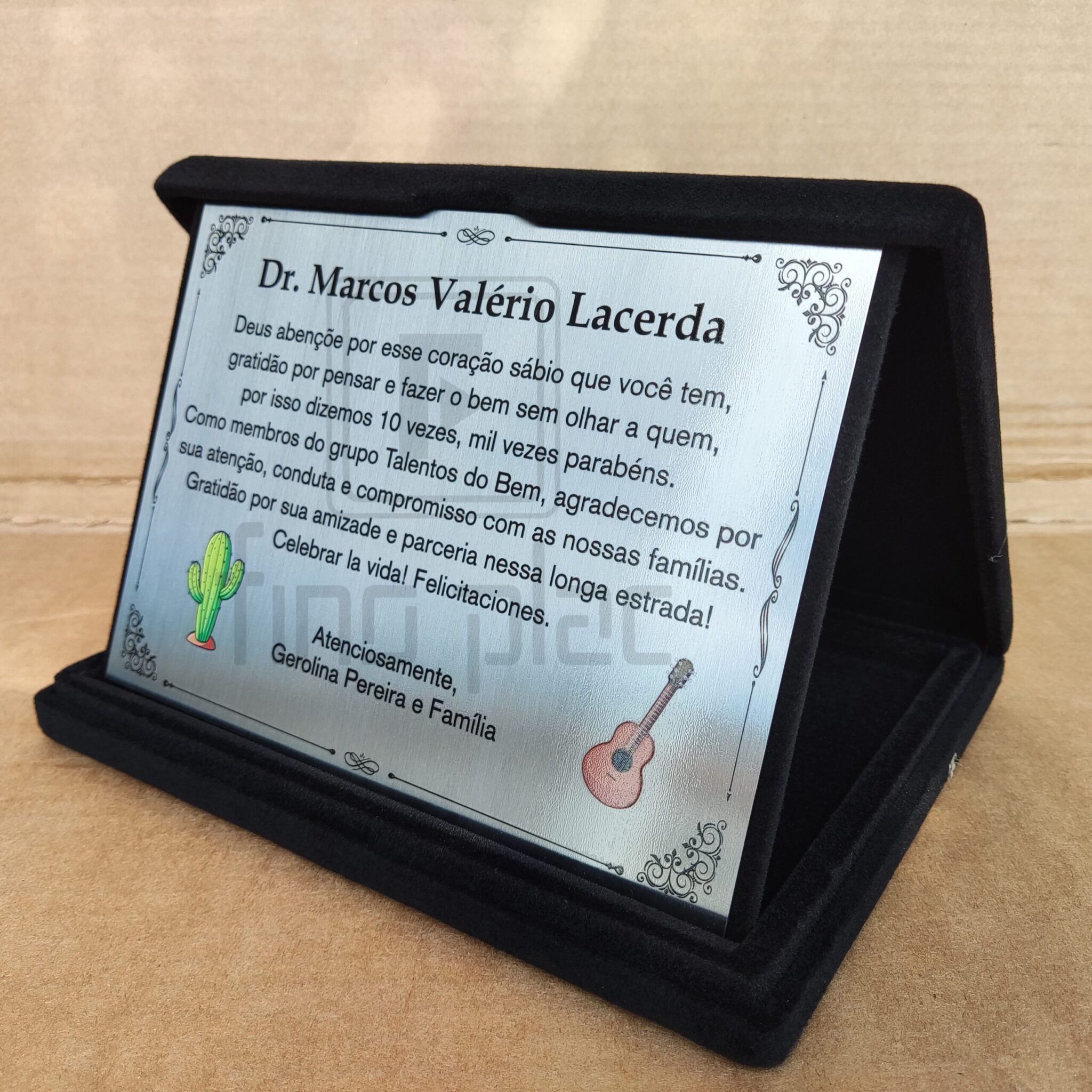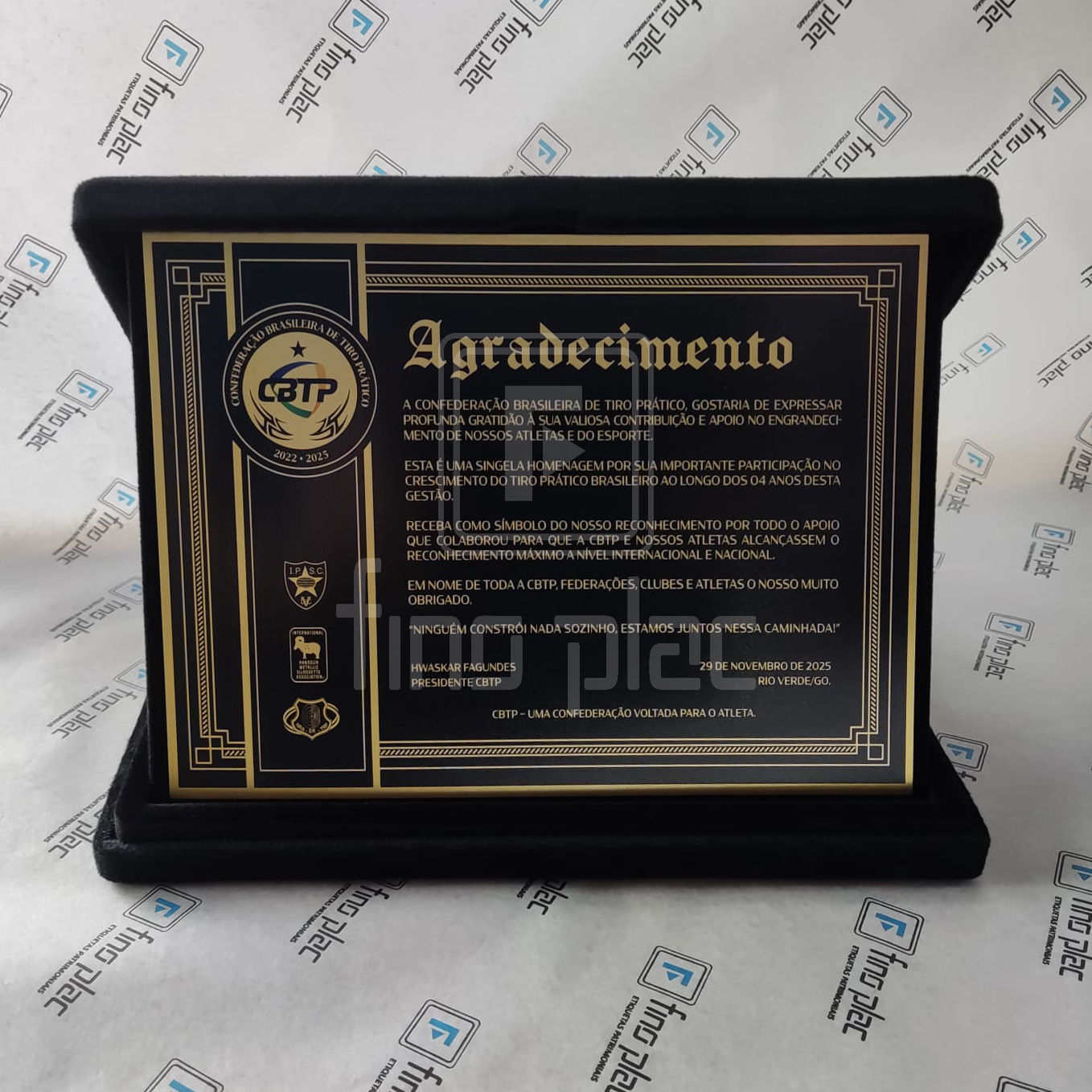 A personalização é completa: nome da pessoa homenageada, cargos, datas, mensagens personalizadas, brasões, logotipos e muito mais — tudo com design profissional que traduz a importância do momento.